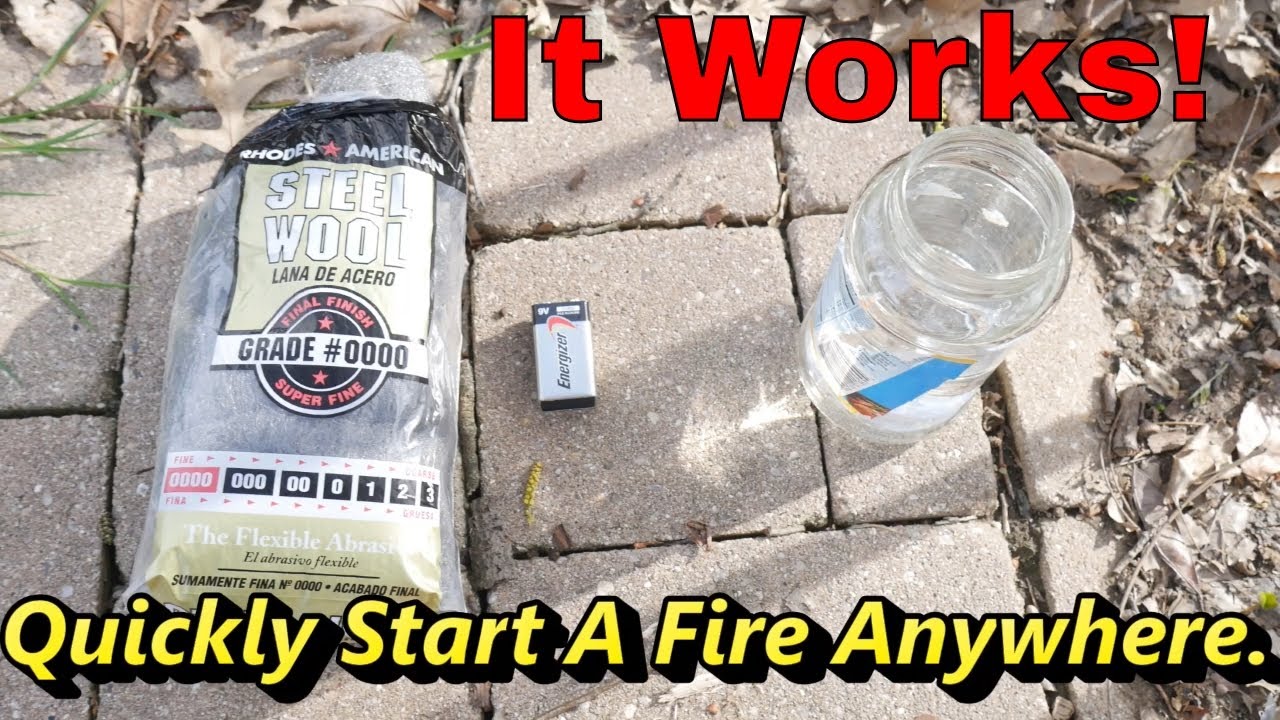 want to learn how to start a fire with just a 9v battery and steel wool? want another way to start a fire to put in your prepper and bug out bag well enjoy! Get Steel Wool Here ( Less then 4$ )